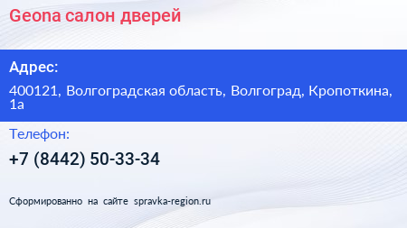 Geona, салон дверей по адресу 400121, Волгоградская область, Волгоград, Кропоткина, 1а в дальнейшем Организация, размещена в следующих категориях:
