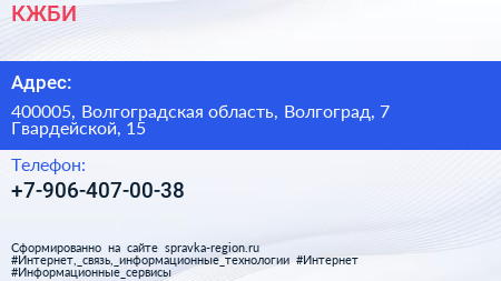КЖБИ по адресу 400005, Волгоградская область, Волгоград, 7 Гвардейской, 15 в дальнейшем Организация, размещена в следующих категориях: