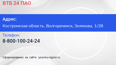 ВТБ 24, ПАО по адресу Костромская область, Волгореченск, Зеленова, 1/28 в дальнейшем Организация, размещена в следующих категориях: