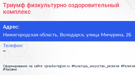 Триумф, физкультурно-оздоровительный комплекс по адресу Нижегородская область, Володарск, улица Мичурина, 2Б в дальнейшем Организация, размещена в следующих категориях: