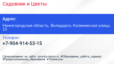 Садовник и Цветы по адресу Нижегородская область, Володарск, Калининская улица, 15 в дальнейшем Организация, размещена в следующих категориях: