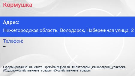 Кормушка по адресу Нижегородская область, Володарск, Набережная улица, 2 в дальнейшем Организация, размещена в следующих категориях: