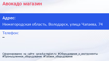 Авокадо, магазин по адресу Нижегородская область, Володарск, улица Чапаева, 74 в дальнейшем Организация, размещена в следующих категориях: