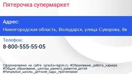 Пятерочка, супермаркет по адресу Нижегородская область, Володарск, улица Суворова, 8в в дальнейшем Организация, размещена в следующих категориях: