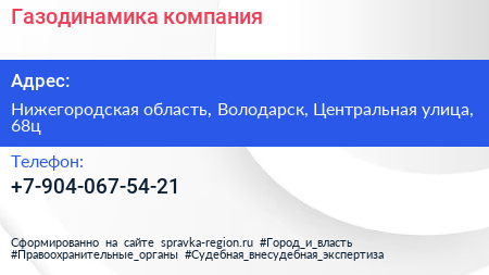 Газодинамика, компания по адресу Нижегородская область, Володарск, Центральная улица, 68ц в дальнейшем Организация, размещена в следующих категориях: