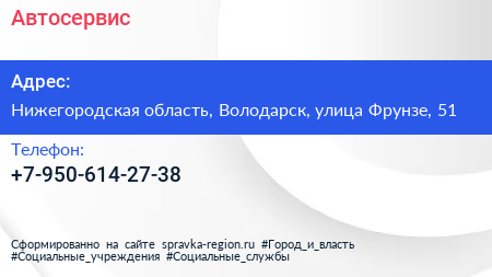 Автосервис по адресу Нижегородская область, Володарск, улица Фрунзе, 51 в дальнейшем Организация, размещена в следующих категориях: