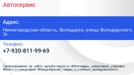 Автосервис по адресу Нижегородская область, Володарск, улица Володарского, 3г в дальнейшем Организация, размещена в следующих категориях: