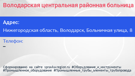 Володарская центральная районная больница по адресу Нижегородская область, Володарск, Больничная улица, 8 в дальнейшем Организация, размещена в следующих категориях: