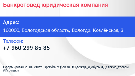 Банкротовед, юридическая компания по адресу 160000, Вологодская область, Вологда, Козлёнская, 3 в дальнейшем Организация, размещена в следующих категориях: