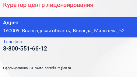 Куратор, центр лицензирования по адресу 160009, Вологодская область, Вологда, Мальцева, 52 в дальнейшем Организация, размещена в следующих категориях: