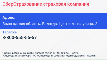 СберСтрахование, страховая компания по адресу Вологодская область, Вологда, Центральная улица, 2 в дальнейшем Организация, размещена в следующих категориях: