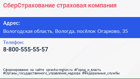 СберСтрахование, страховая компания по адресу Вологодская область, Вологда, посёлок Огарково, 35 в дальнейшем Организация, размещена в следующих категориях: