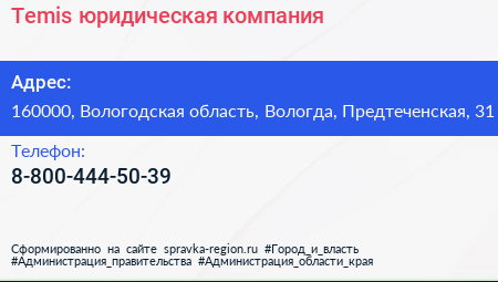 Temis, юридическая компания по адресу 160000, Вологодская область, Вологда, Предтеченская, 31 в дальнейшем Организация, размещена в следующих категориях: