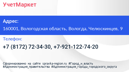 УчетМаркет по адресу 160001, Вологодская область, Вологда, Челюскинцев, 9 в дальнейшем Организация, размещена в следующих категориях: