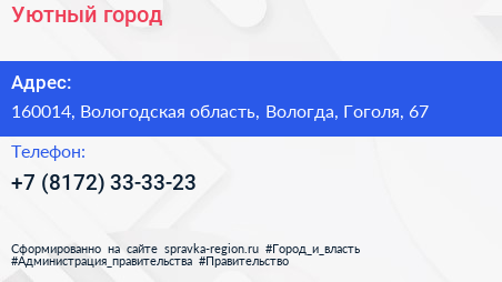 Уютный город по адресу 160014, Вологодская область, Вологда, Гоголя, 67 в дальнейшем Организация, размещена в следующих категориях:
