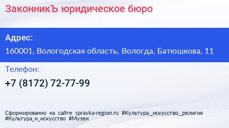 ЗаконникЪ, юридическое бюро по адресу 160001, Вологодская область, Вологда, Батюшкова, 11 в дальнейшем Организация, размещена в следующих категориях: