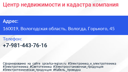 Центр недвижимости и кадастра, компания по адресу 160019, Вологодская область, Вологда, Горького, 45 в дальнейшем Организация, размещена в следующих категориях: