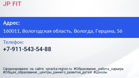 JP FIT по адресу 160011, Вологодская область, Вологда, Герцена, 56 в дальнейшем Организация, размещена в следующих категориях: