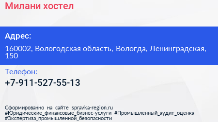 Милани, хостел по адресу 160002, Вологодская область, Вологда, Ленинградская, 150 в дальнейшем Организация, размещена в следующих категориях: