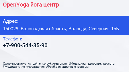 OpenYoga, йога-центр по адресу 160029, Вологодская область, Вологда, Северная, 16Б в дальнейшем Организация, размещена в следующих категориях: