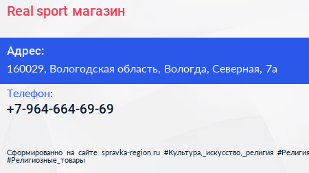 Real sport, магазин по адресу 160029, Вологодская область, Вологда, Северная, 7а в дальнейшем Организация, размещена в следующих категориях: