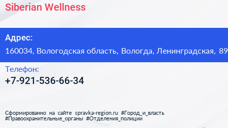 Siberian Wellness по адресу 160034, Вологодская область, Вологда, Ленинградская, 89 в дальнейшем Организация, размещена в следующих категориях: