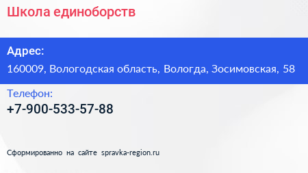 Школа единоборств по адресу 160009, Вологодская область, Вологда, Зосимовская, 58 в дальнейшем Организация, размещена в следующих категориях: