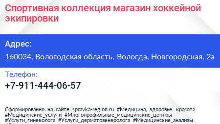 Спортивная коллекция, магазин хоккейной экипировки по адресу 160034, Вологодская область, Вологда, Новгородская, 2а в дальнейшем Организация, размещена в следующих категориях: