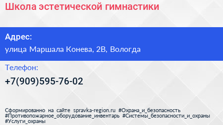 Школа эстетической гимнастики по адресу улица Маршала Конева, 2В, Вологда в дальнейшем Организация, размещена в следующих категориях: