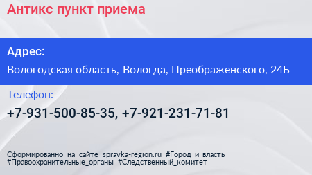 Антикс, пункт приема по адресу Вологодская область, Вологда, Преображенского, 24Б в дальнейшем Организация, размещена в следующих категориях: