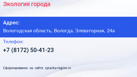 Экология города по адресу Вологодская область, Вологда, Элеваторная, 24а в дальнейшем Организация, размещена в следующих категориях: