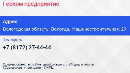 Геоком, предприятие по адресу Вологодская область, Вологда, Машиностроительная, 29 в дальнейшем Организация, размещена в следующих категориях: