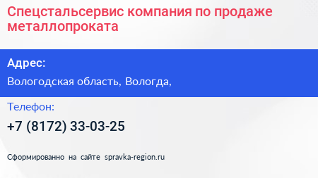 Спецстальсервис, компания по продаже металлопроката по адресу Вологодская область, Вологда, в дальнейшем Организация, размещена в следующих категориях: