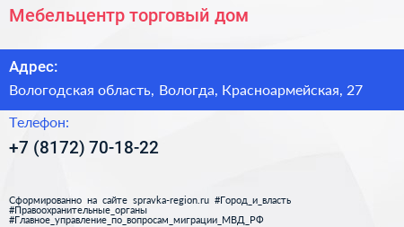 Мебельцентр, торговый дом по адресу Вологодская область, Вологда, Красноармейская, 27 в дальнейшем Организация, размещена в следующих категориях: