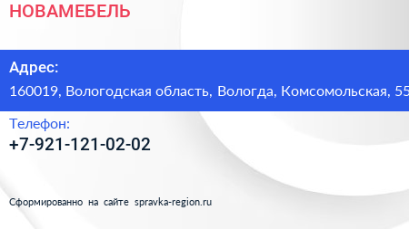 НОВАМЕБЕЛЬ по адресу 160019, Вологодская область, Вологда, Комсомольская, 55 в дальнейшем Организация, размещена в следующих категориях: