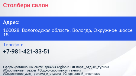 Столбери, салон по адресу 160028, Вологодская область, Вологда, Окружное шоссе, 18 в дальнейшем Организация, размещена в следующих категориях: