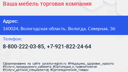 Ваша мебель, торговая компания по адресу 160024, Вологодская область, Вологда, Северная, 36 в дальнейшем Организация, размещена в следующих категориях:
