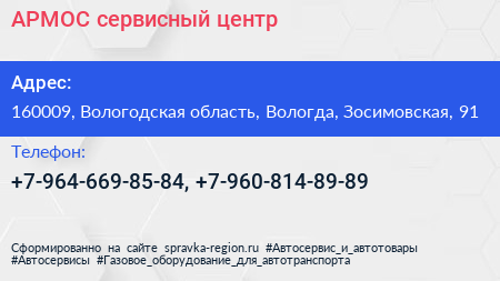 АРМОС, сервисный центр по адресу 160009, Вологодская область, Вологда, Зосимовская, 91 в дальнейшем Организация, размещена в следующих категориях: