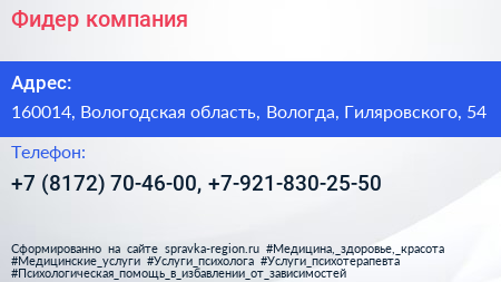 Для связи с организацией воспользуйтесь номером телефона: +7 (8172) 70-46-00, +7-921-830-25-50. Пн: c 09:00-17:00, Вт: c 09:00-17:00, Ср: c 09:00-17:00, Чт: c 09:00-17:00, Пт: c 09:00-17:00, Сб: c 09:00-15:00, Вс: выходной, вы можете обратиться в эту организацию.