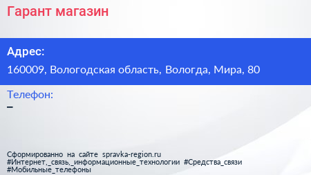 Гарант, магазин по адресу 160009, Вологодская область, Вологда, Мира, 80 в дальнейшем Организация, размещена в следующих категориях: