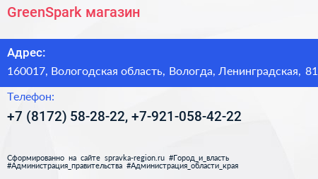 GreenSpark, магазин по адресу 160017, Вологодская область, Вологда, Ленинградская, 81 в дальнейшем Организация, размещена в следующих категориях:
