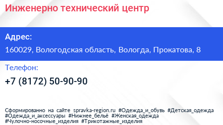 Инженерно-технический центр по адресу 160029, Вологодская область, Вологда, Прокатова, 8 в дальнейшем Организация, размещена в следующих категориях: