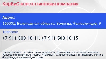 КорБиС, консалтинговая компания по адресу 160001, Вологодская область, Вологда, Челюскинцев, 9 в дальнейшем Организация, размещена в следующих категориях: