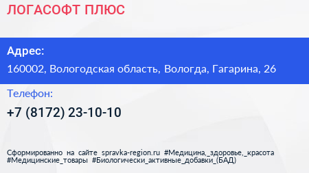 ЛОГАСОФТ ПЛЮС по адресу 160002, Вологодская область, Вологда, Гагарина, 26 в дальнейшем Организация, размещена в следующих категориях: