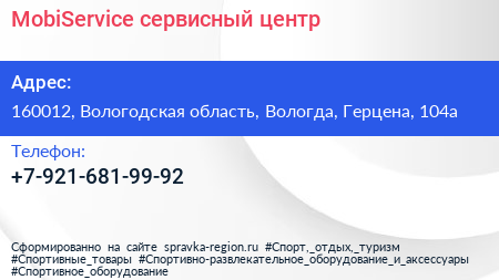 MobiService, сервисный центр по адресу 160012, Вологодская область, Вологда, Герцена, 104а в дальнейшем Организация, размещена в следующих категориях: