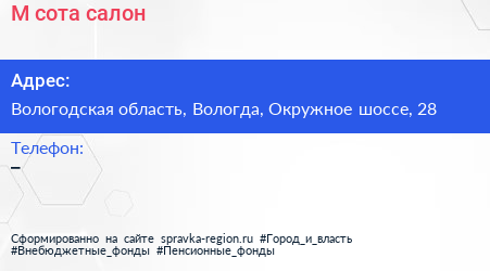 М.сота, салон по адресу Вологодская область, Вологда, Окружное шоссе, 28 в дальнейшем Организация, размещена в следующих категориях: