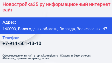 Новостройка35.ру, информационный интернет-сайт по адресу 160000, Вологодская область, Вологда, Зосимовская, 47 в дальнейшем Организация, размещена в следующих категориях: