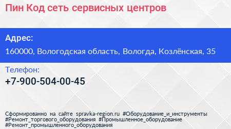 Пин-Код, сеть сервисных центров по адресу 160000, Вологодская область, Вологда, Козлёнская, 35 в дальнейшем Организация, размещена в следующих категориях: