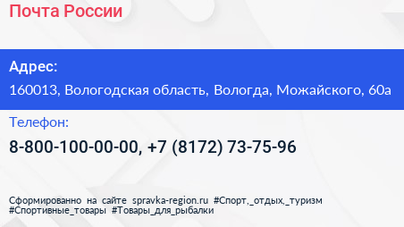Почта России по адресу 160013, Вологодская область, Вологда, Можайского, 60а в дальнейшем Организация, размещена в следующих категориях: