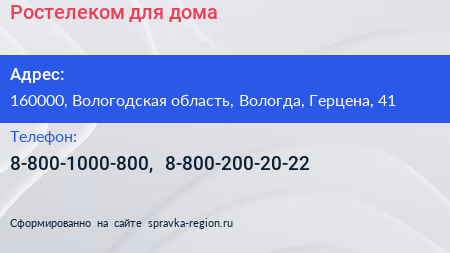 Ростелеком для дома по адресу 160000, Вологодская область, Вологда, Герцена, 41 в дальнейшем Организация, размещена в следующих категориях: